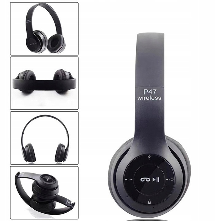 Słuchawki bezprzewodowe, składane, regulowane- model P47.