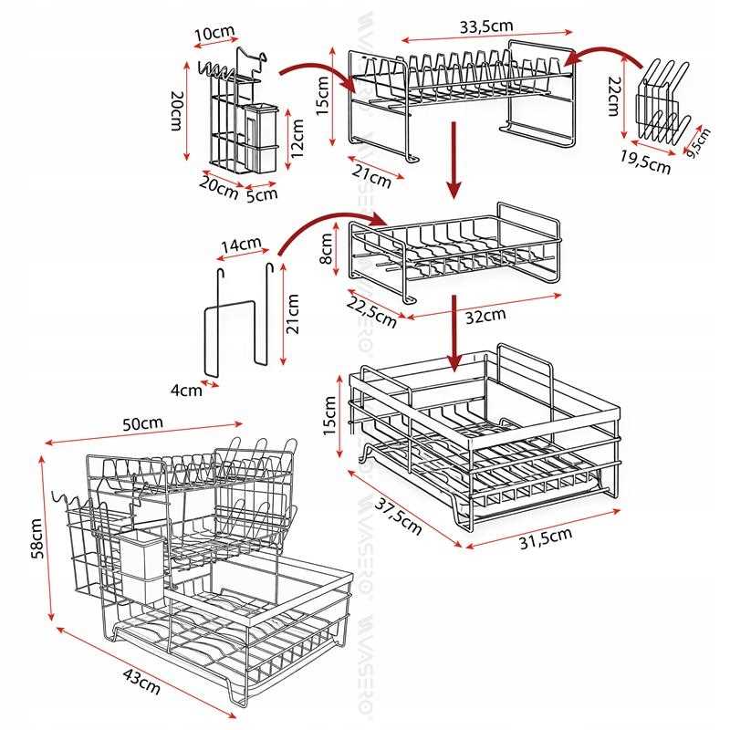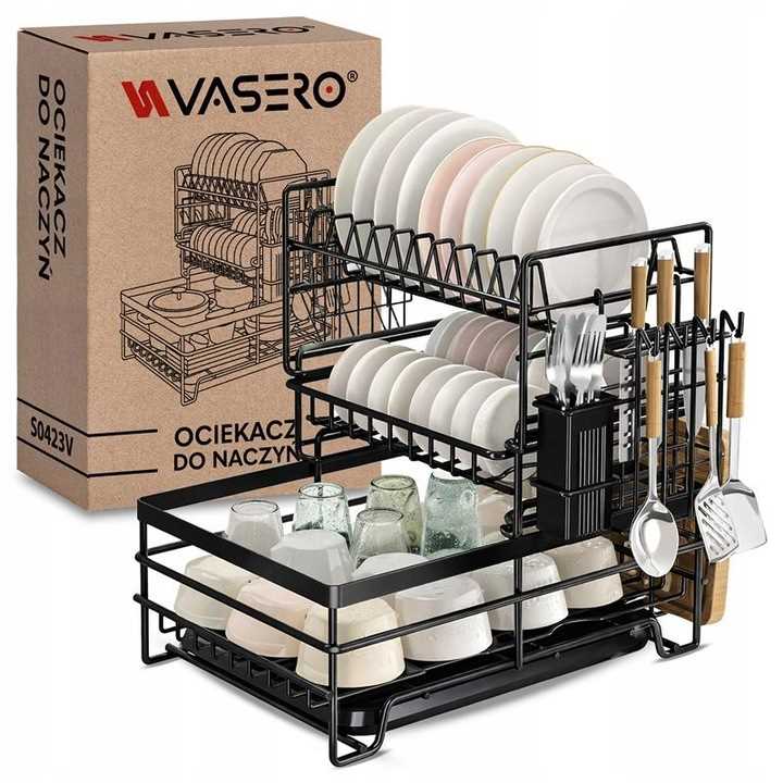 3-poziomowy duży stojak do suszenia naczyń z ociekaczem: